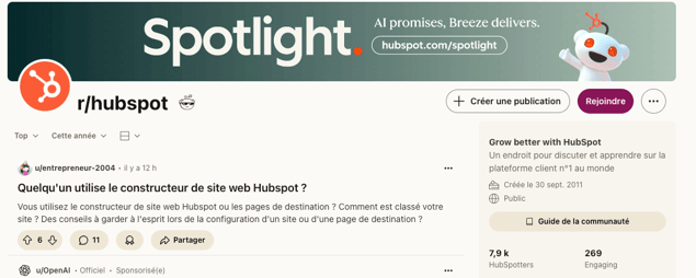 Ciblez les subreddits où votre audience B2B se pose des questions. Ne bombardez pas la communauté de liens : participez aux discussions, répondez aux questions difficiles et construisez votre expertise petit à petit.